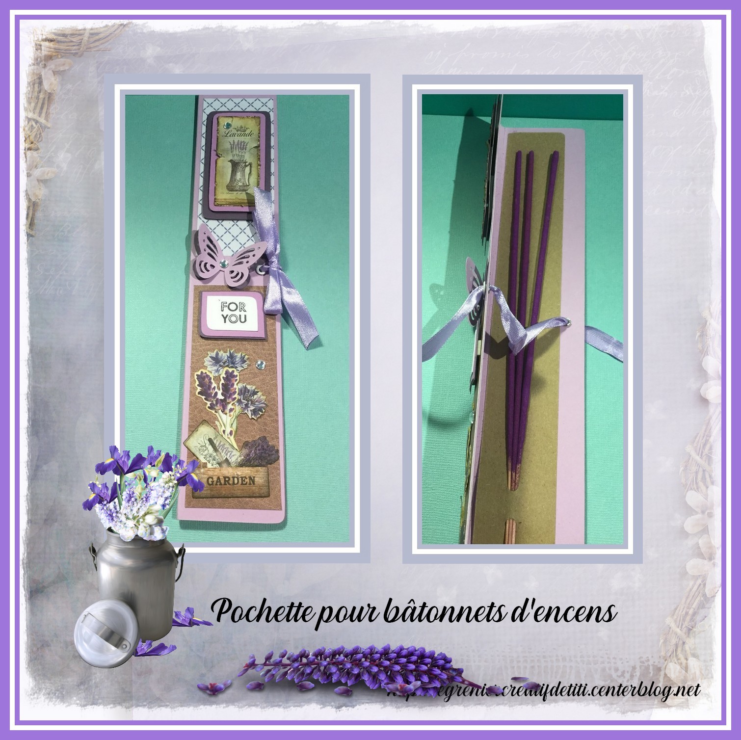 Il est destiné à l'origine pour compléter un de mes échanges ATC mais pourquoi pas le décliner pour le simple plaisir de faire plaisir ou pour décorer vos tables lors d’événements particuliers : Il suffira simplement de modifier les embellissements et ajouter des bâtonnets aux senteurs qui vous conviendront.
